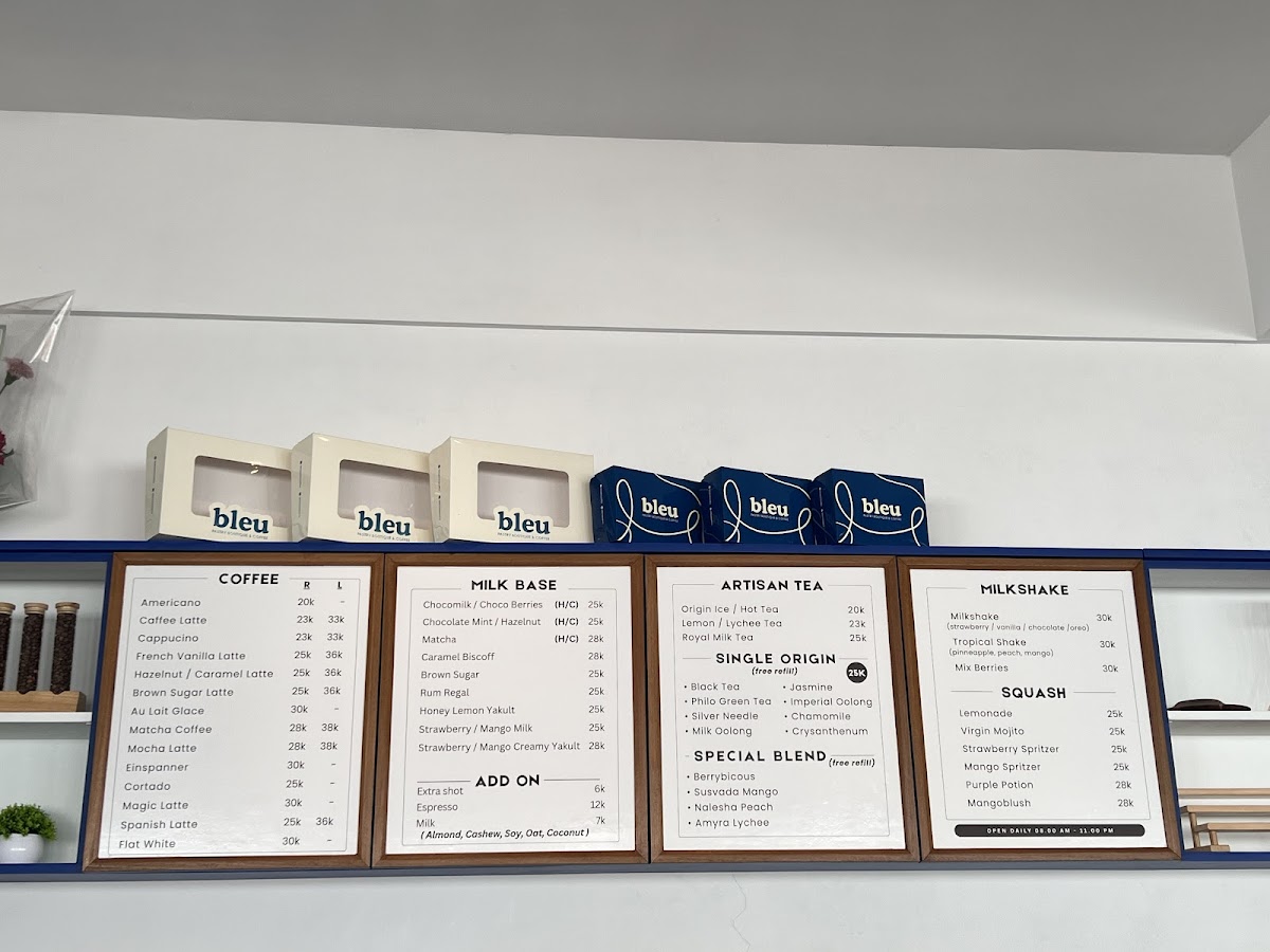 Bleu Pastry & Coffee Menu